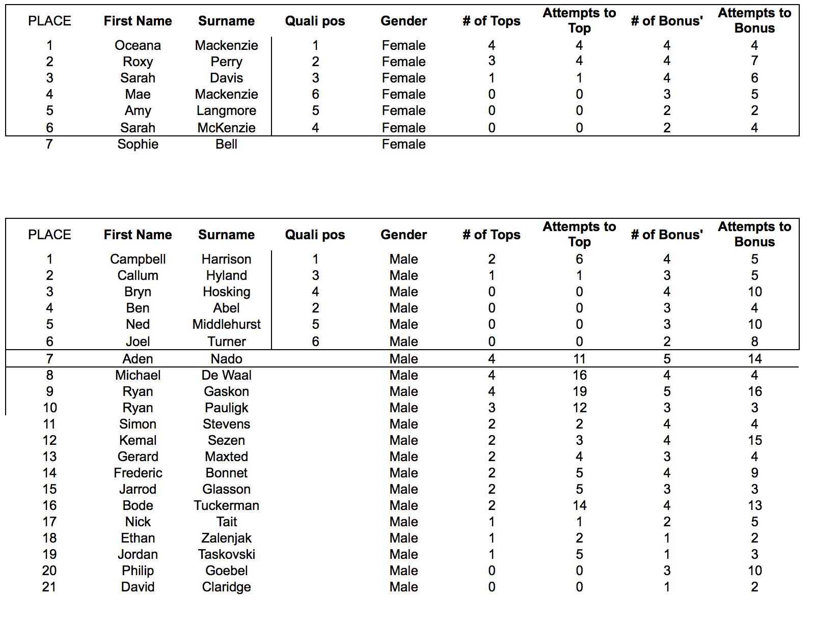 Northside Boulders Summer Boulder Ladder 2017